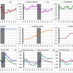 (Legend: The squares show the following metrics (1 to 20, left to right, top to bottom): (1) real price returns and real total returns (with dividends reinvested at market prices), (2) trailing-twelve month (ttm) dividend yields, (3) ttm price to earnings (P/E) ratios and fwd P/E ratios based on analyst estimates, (4) ttm enterprise value to earnings before interest, taxes, depreciation and amortization (EV/EBITDA) ratios, (5) ttm price to ebitda (P/EBITDA) ratios, (6) real ttm sales and book value growth, (7) real ttm dividend growth, (8) real ttm EPS growth, (9) real ttm EBITDA growth, (10) annualized inflation rates for the prior 6 years and long-term government bond yields, (11) ttm price to sales (P/S) ratios, (12) ttm dividend margins (ttm dividends as a % of sales), (13) ttm EPS margins (ttm EPS as a % of sales), (14) ttm EBITDA margins (ttm EBITDA as a a % of sales), (15) interest, taxes, depreciation and amortization (ITDA) as a % of EBITDA (which gives a picture of how much the earnings are being reduced by those expenses at any given time–very important), (16) price to book (P/B) ratios, (17) ttm dividend payout ratios (ttm dividends divided by ttm EPS), (18) ttm EPS return on equity (ROE) (ttm EPS divided by book value), (19) ttm EBITDA ROE (ttm EBITDA divided by book value), (20) real net debt (debt minus cash and liquid assets, i.e., the difference between enterprise value and price). The dotted black line in each chart shows the metric’s average for the period.)