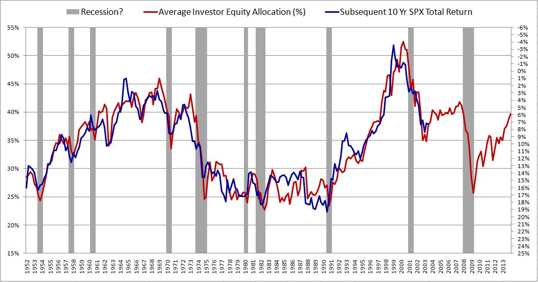 Now, this doesn’t mean that allocation dynamics don’t affect stock prices, or that they aren’t an important driver of returns–they are, without question.  We should pay attention to them, factor them into our market analyses.  But, admittedly, the metric doesn’t deserve the reputation for predictive precision that the chart, by chance, affords it.