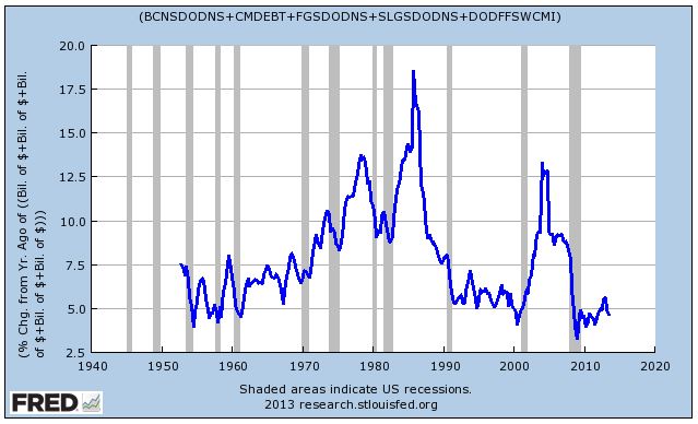 How does the metric know, for example, that the forward growth rate of the total supply of cash and bonds in investor portfolios (shown below), and therefore the forward growth rate of stock prices (assuming allocation preferences are mean-reverting), is going to be higher in the 1970s and 1980s than in the 1990s?