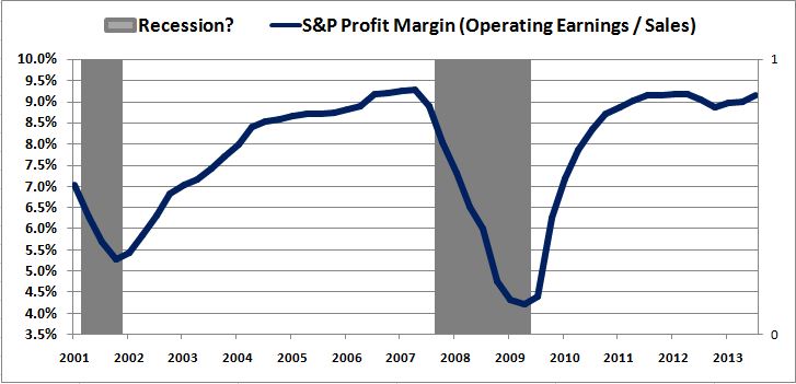 I would take issue with the suggestion that presently elevated profit margins resulted from the deficits of the financial crisis. They were high even before the crisis, when deficits were very low. For corporations in the S&P 500, they were just as high they are now: