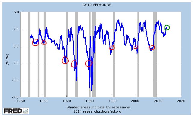 Right now, the yield curve is extremely steep, a reflection of the fact that Fed policy is easier than it has ever been in U.S. history. We simply are not in the kind of environment that produces recessions, and therefore we are not in the kind of environment that produces sizeable drops in EPS.