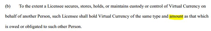 That line right there, if accepted into regulation, would be enough to conclusively destroy any hope of a Bitcoin monetary takeover.  It effectively sets a 100% reserve requirement for Bitcoin banks, making it imposible for the supply of Bitcoin to expand in the ways that would be necessary for the cryptocurrency to displace conventional money.