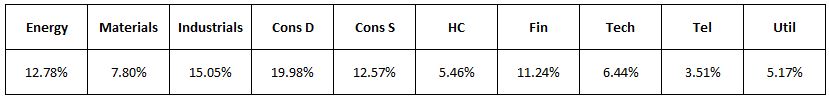 The following table shows the historical average revenue contributions of each of the 10 GICS sectors: